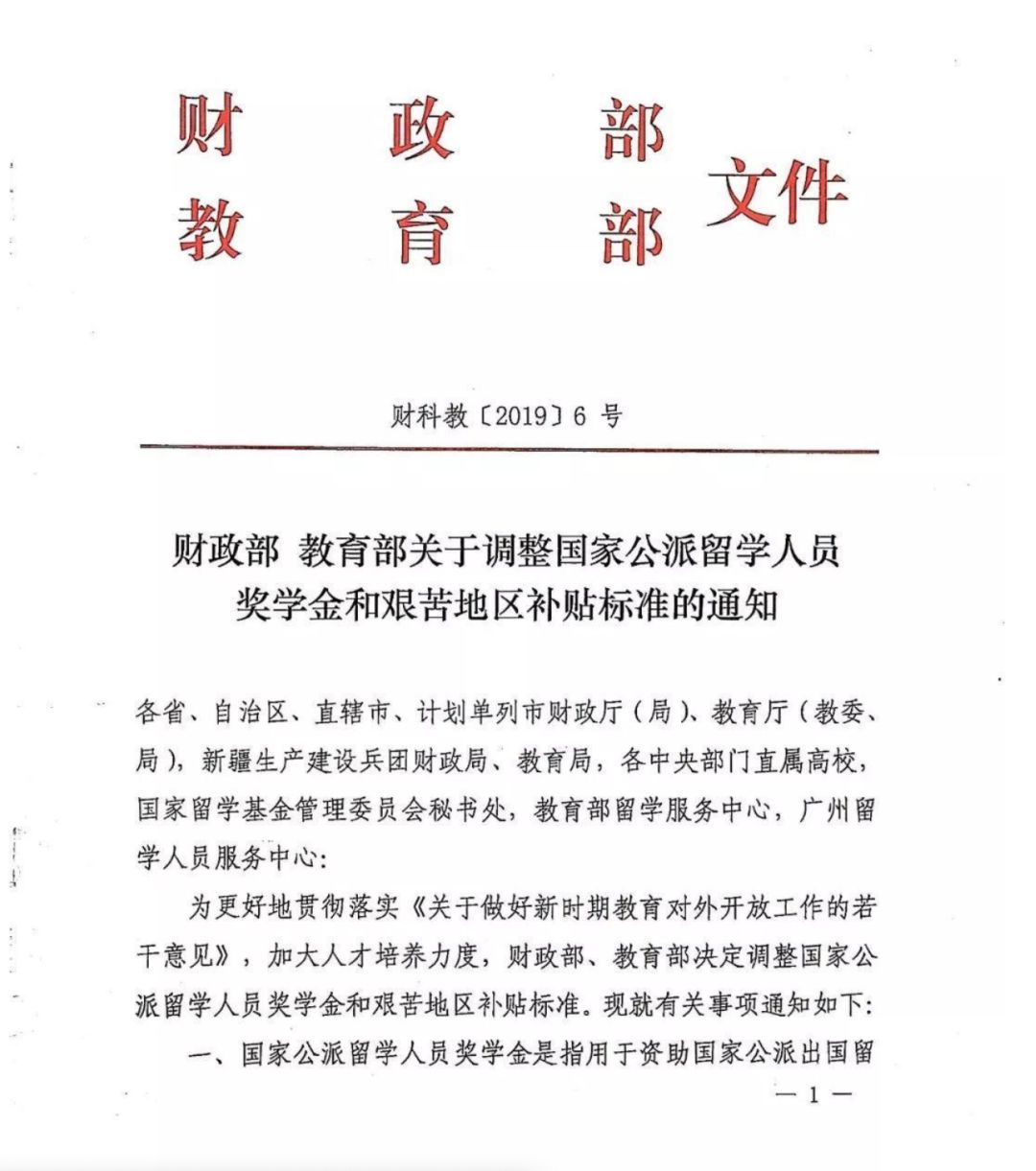 为了更好贯彻落实《关于做好新时期教育对外开放工作的诺干意见》,加大人才培养力度,财政部、教育部决定调整国家公派留学人员(包含访学人员和博士后项目人员)奖学金和艰苦地区补贴标准。