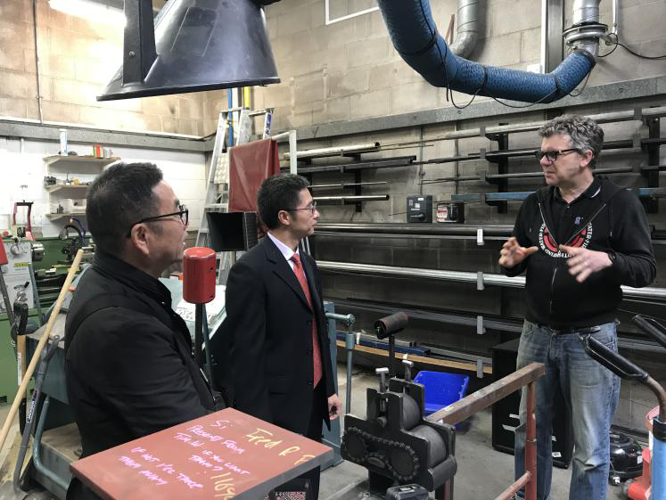 | 图为 访问团与伯恩茅斯大学模具作坊学生交谈 |