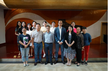 本网讯: 7月8日,英国巴斯斯巴大学音乐表演系高级讲师Tom Worley 先生到访我校音乐舞蹈学院,为学院师生开办大师课。该院李开沛院长、肖笛副院长、高昆副书记、音乐系陈东主任及部分钢琴教师参与座谈并观摩大师课,来访活动由国际合作与中心副主任唐小田主持。