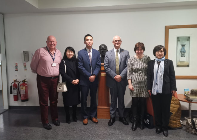 (图为Claire McDiarmid院长与部分主讲教师迎接吴文平教授一行)