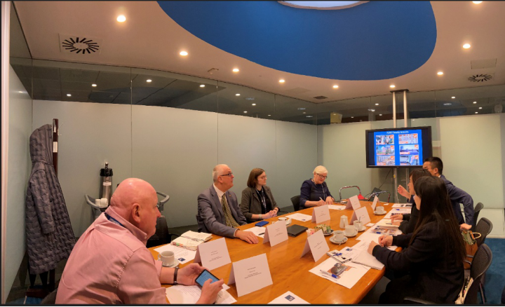 (图为吴文平一行与英国培训专家团队交流讨论国际化法学专业人才培养路径)