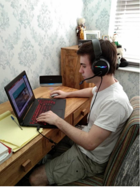 英国籍教师Adam Brown在疫情初期回到英国。他本学期负责教授《商务英语听说》和非英语专业演讲班的课程。随着国际疫情形势日益严峻,Adam一边居家隔离,一边心系国内的英语教学工作。他不仅主动学习了腾讯课堂等多项线上教学设备的使用方法,还克服8小时时差,坚持完成每周四次共八节,每次课约100分钟的直播授课任务。课后Adam还会精选BBC新闻并自己录制精听材料,作为作业发布,保证精听泛听结合,全面地锻炼学生听力。