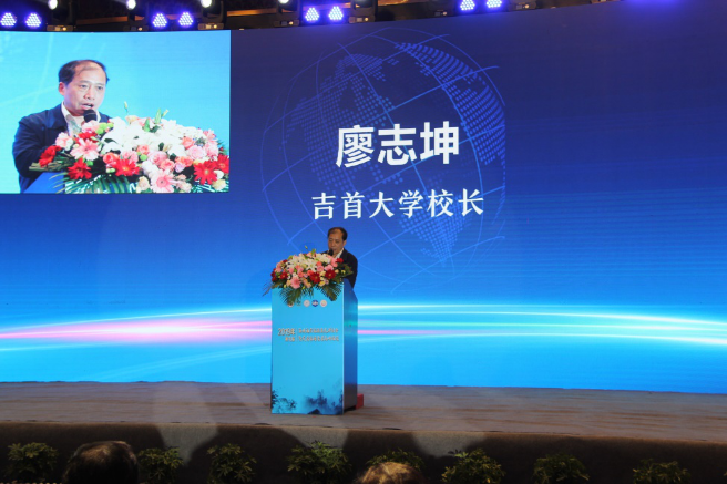 开幕式上,廖志坤校长致辞。他首先代表东道主向来自宝岛台湾、省文化和旅游厅、省委台湾工作办公室和张家界市委市人民政府的领导,向来自海峡两岸兄弟院校师生、来自旅游学界和业界的与会专家表达了热烈的欢迎。廖校长向嘉宾简要介绍了吉首大学的办学成就、特色与优势,指出学校立足大湘西、贡献大武陵、服务旅游扶贫和乡村振兴国家战略需求,强化旅游特色学科建设,取得了系列研究成果。同时,他肯定宝岛台湾在旅游产业发展和旅游人才培养方面的成功做法,并提出两岸学界要深化合作、相互借鉴、共同进步。