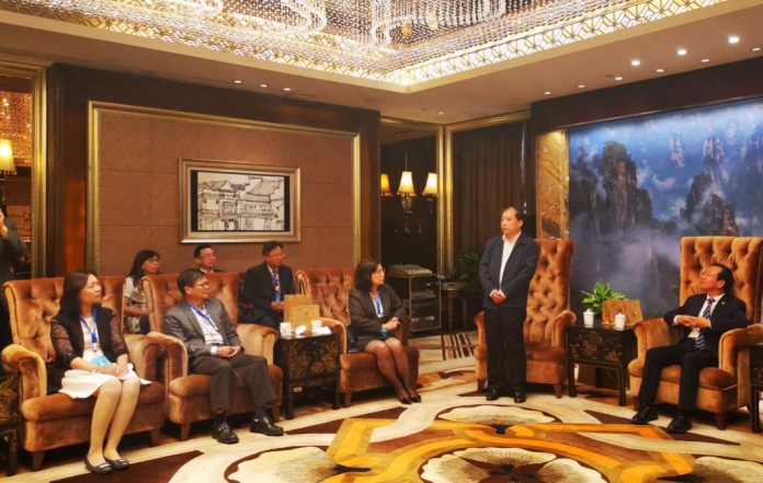 廖志坤校长一行还专程拜会了前来指导并做主旨发言的中共湖南省委台湾工作办公室副主任黎里溪,感谢他对吉首大学在张家界举办海峡两岸论坛的关心和支持,同时希望省台办继续为吉首大学深化与台湾高校合作交流提供平台。黎主任表示,吉首大学位于大湘西,具有得天独厚的地质和文化资源,在促进湘台人文交流方面大有可为,台办一定会创造机会,促成更多实质性的交流成果。