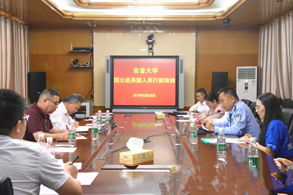 5月28日下午,吉首大学在张家界校区会议室举行因公赴英国巴斯斯巴大学考察、赴英国莱斯特大学暑期培训的两个代表团的行前培训。副校长罗金铭,吉首市出入境与人口管理大队大队长石国新,国际教育学院副院长唐小田及全体赴英人员与会。会议由国际合作与交流中心主任刘汝荣主持。